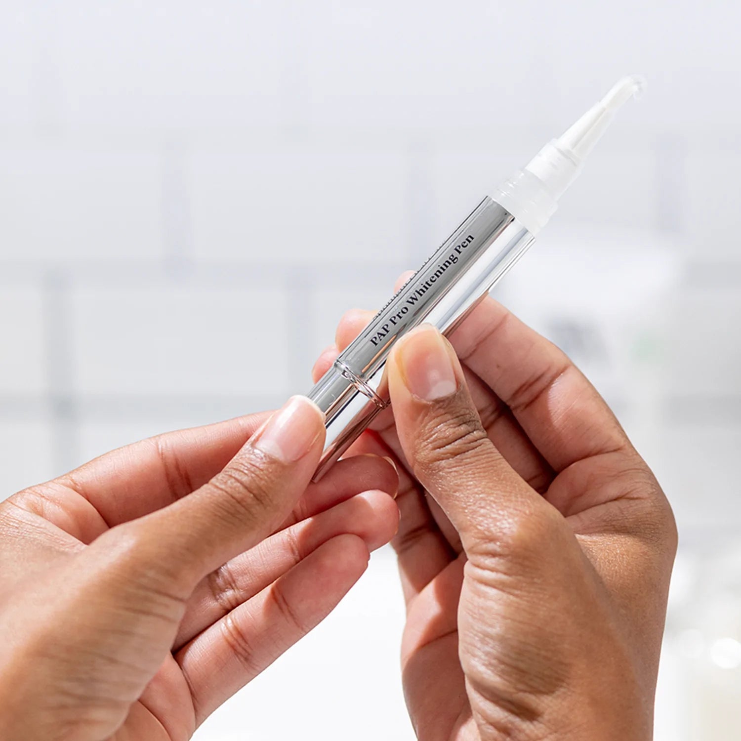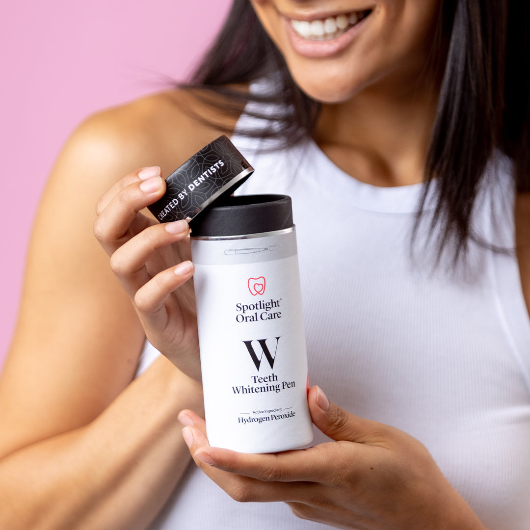 It dispenses a small amount of gel, which contains the active whitening ingredient hydrogen peroxide, onto the teeth. Unlike other pens which use a white paint-like substance to cover stains, this formula actively dissolves stains leaving long-lasting results.